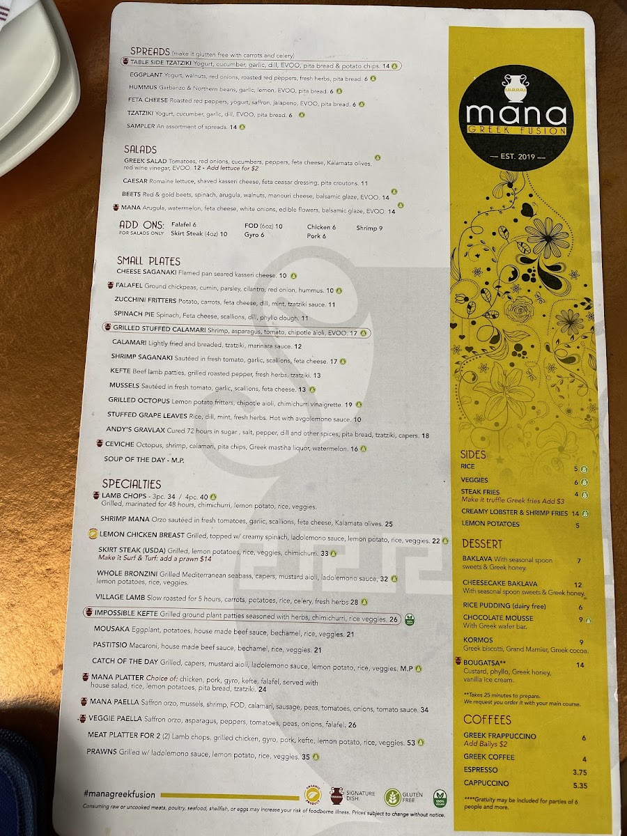 Whether it’s a casual lunch or a special dinner, Mana Greek Fusion provides not only exceptional food but also a warm, inviting atmosphere that's perfect for sharing memorable moments.